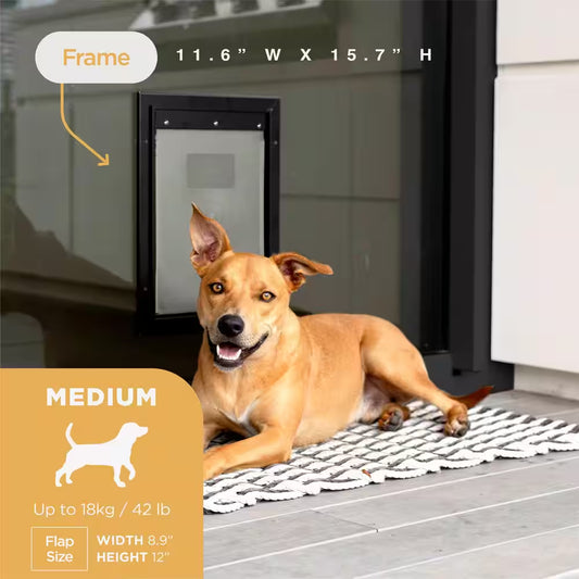 Medium Deluxe Aluminum Pet Door for Dogs, Adjustable Tunnel for Walls and Screens up to 2.8 In.