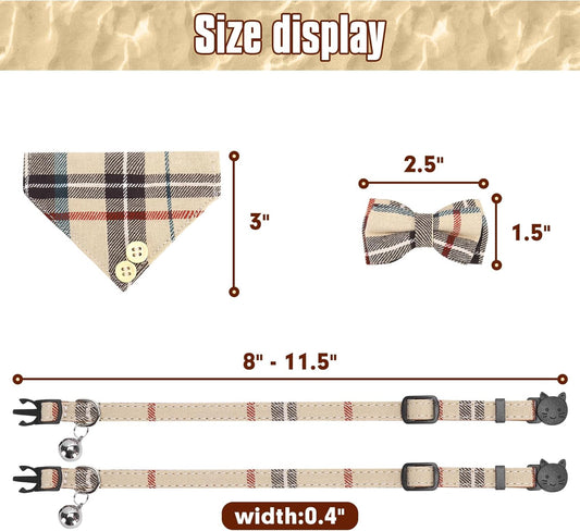 Cat Collar Breakaway with Bells and Bowtie, 2 Pack Cute Leather Cat Bandana Collar